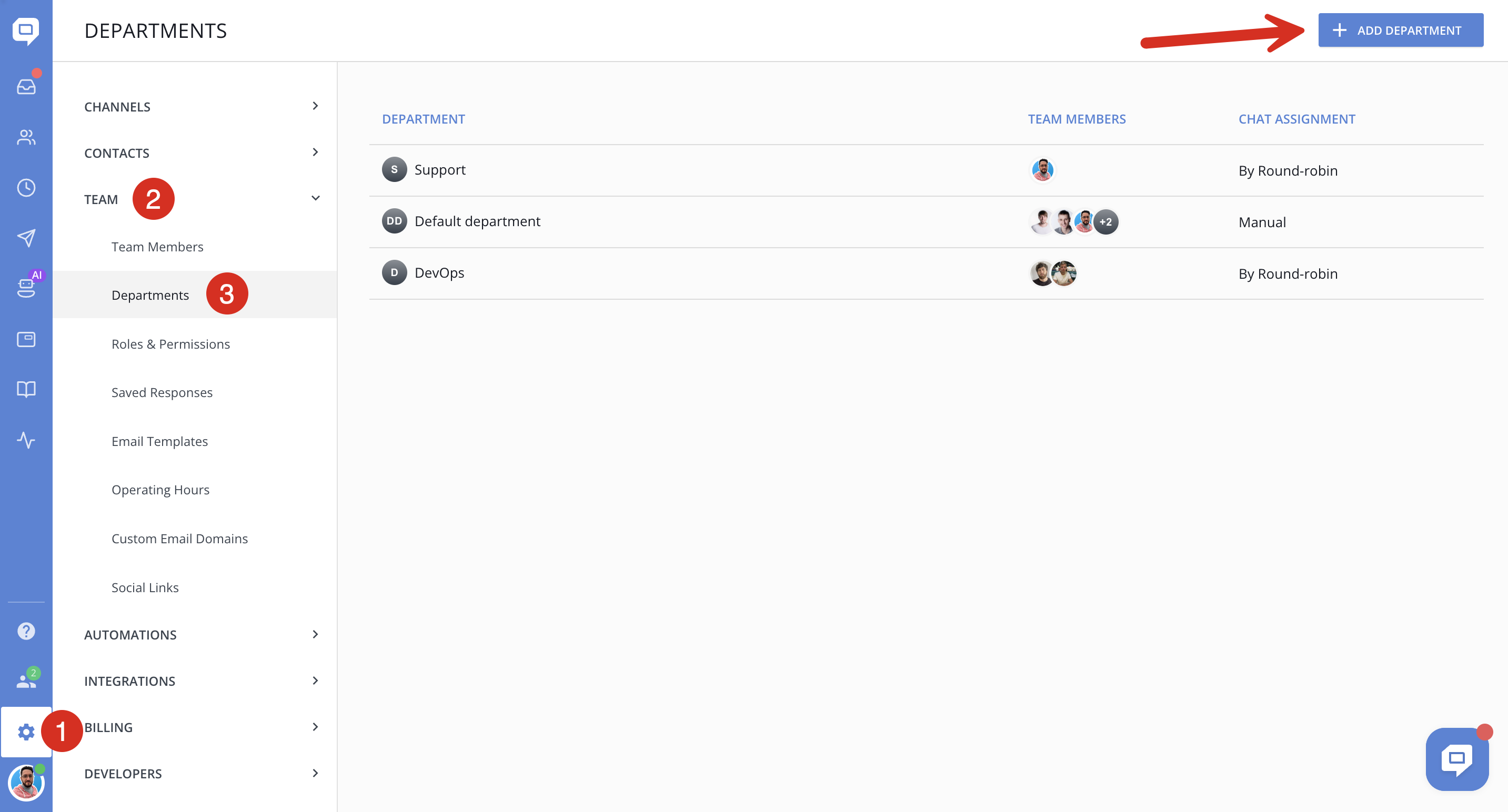 If you want to create a customer service department or two, just go to Settings → Team → Departments and click the 'Add department' button.