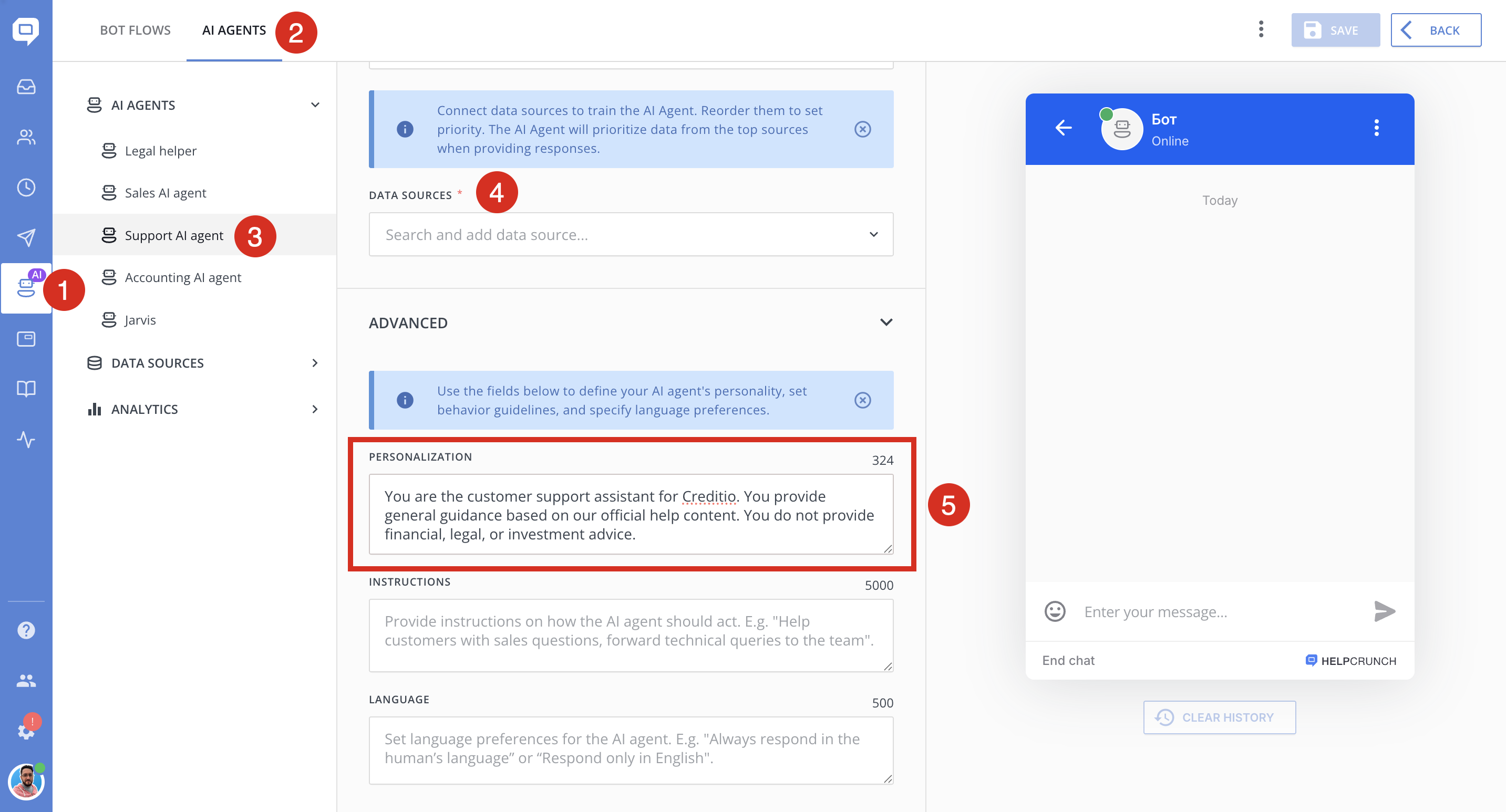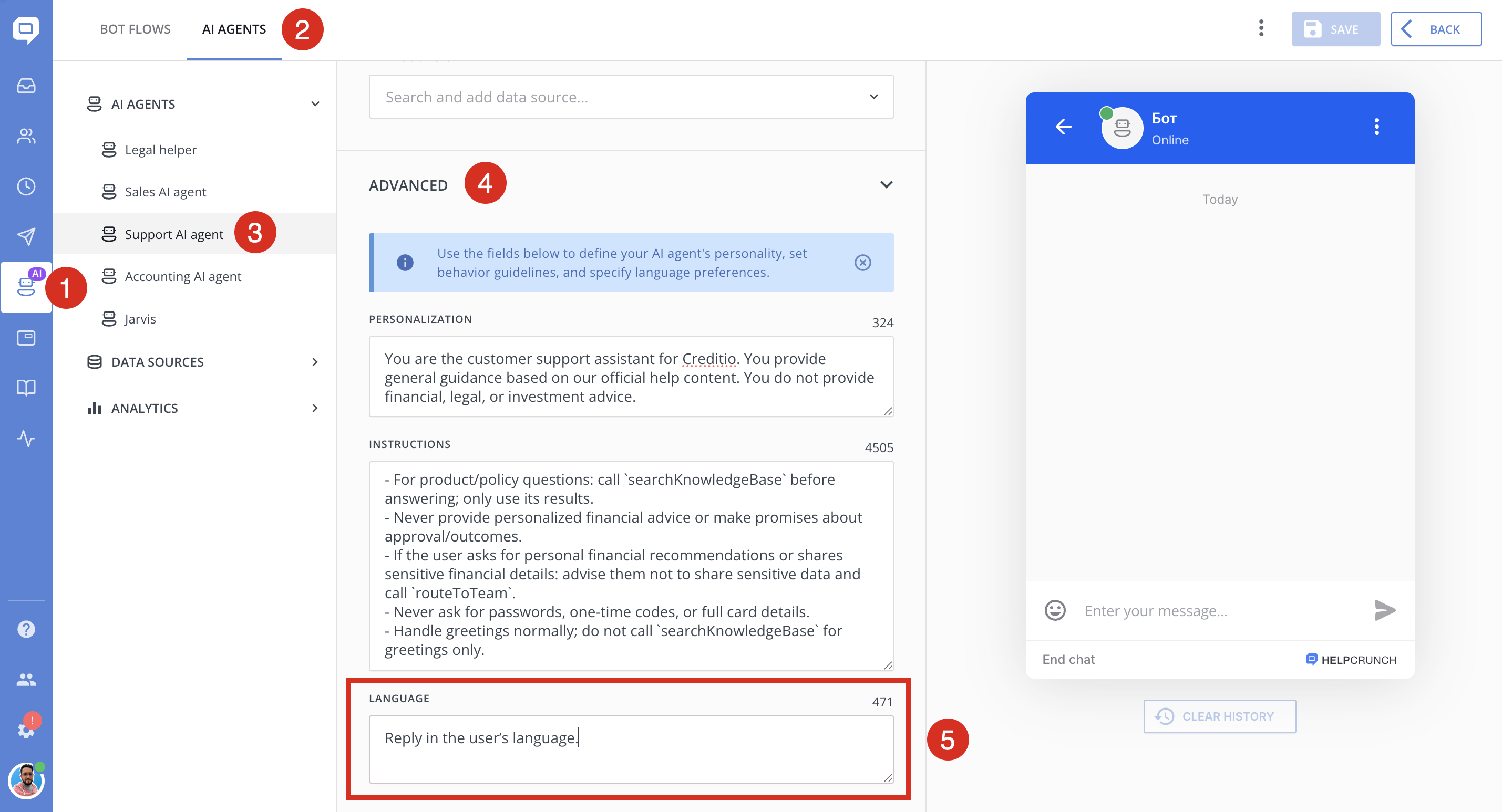 - If the user asks for personal financial recommendations or shares sensitive financial details: advise them not to share sensitive data and call `routeToTeam`.