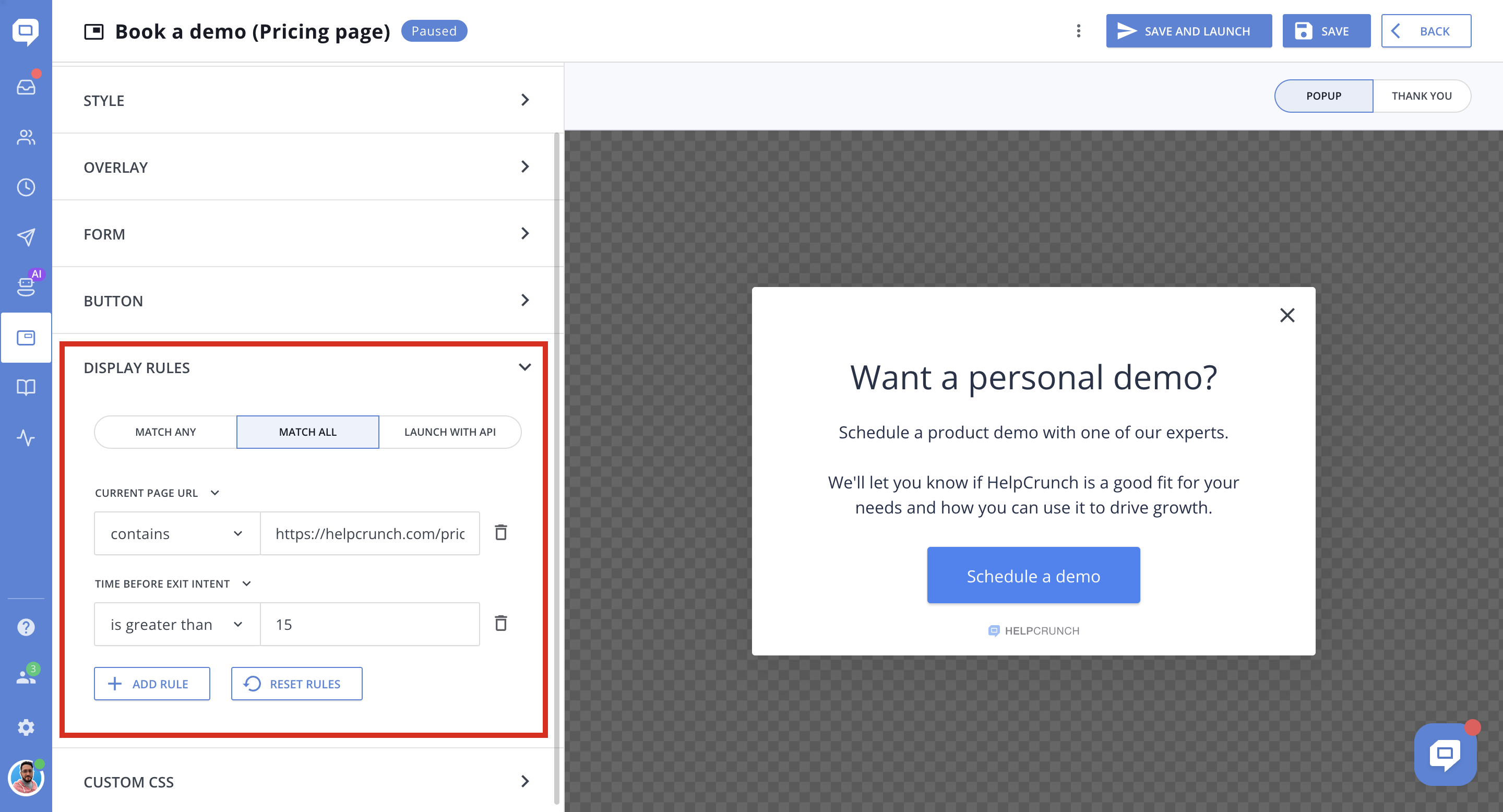 2. Combine multiple rules with Match ANY/Match ALL operators for more precise engagement.