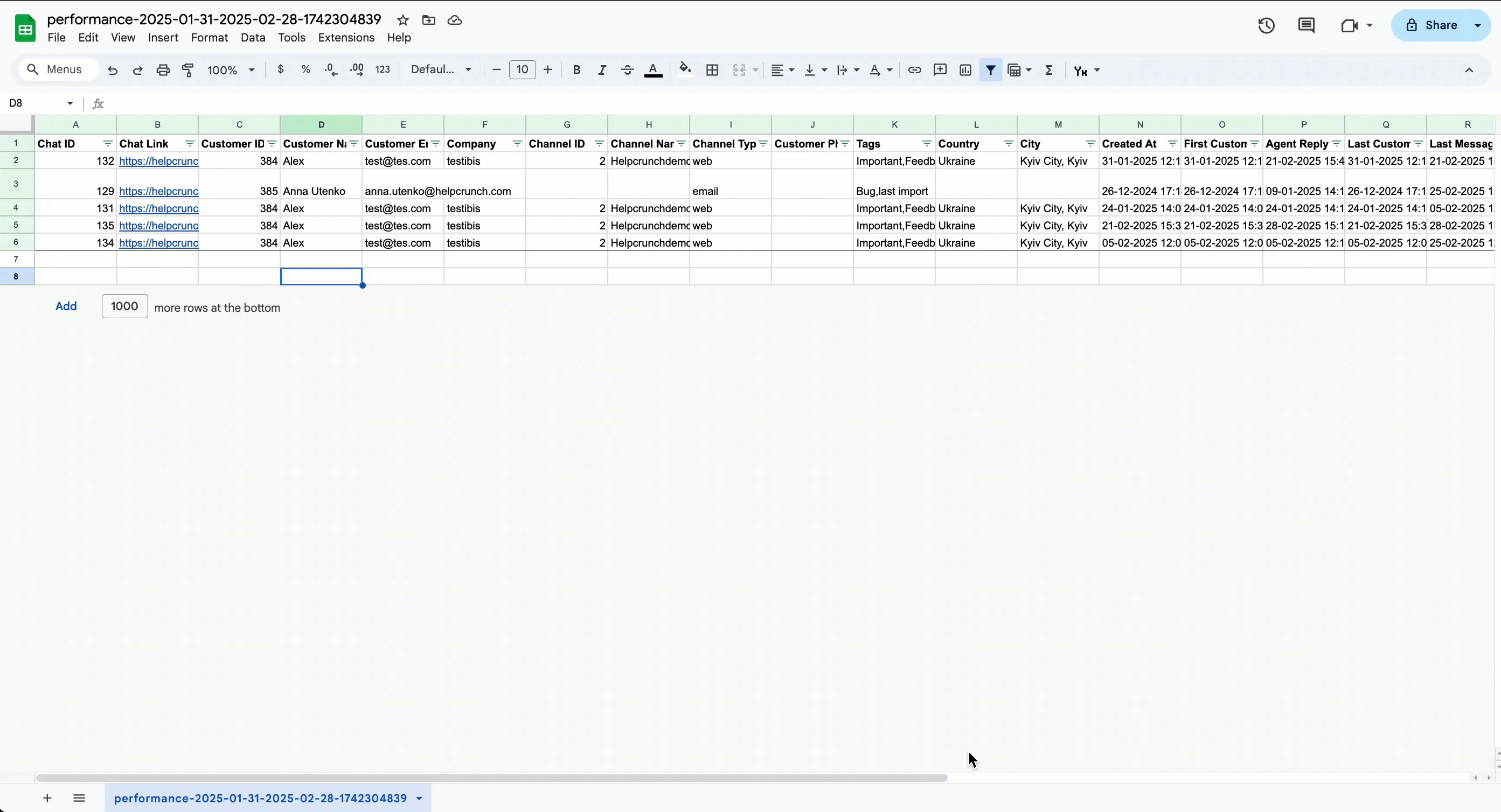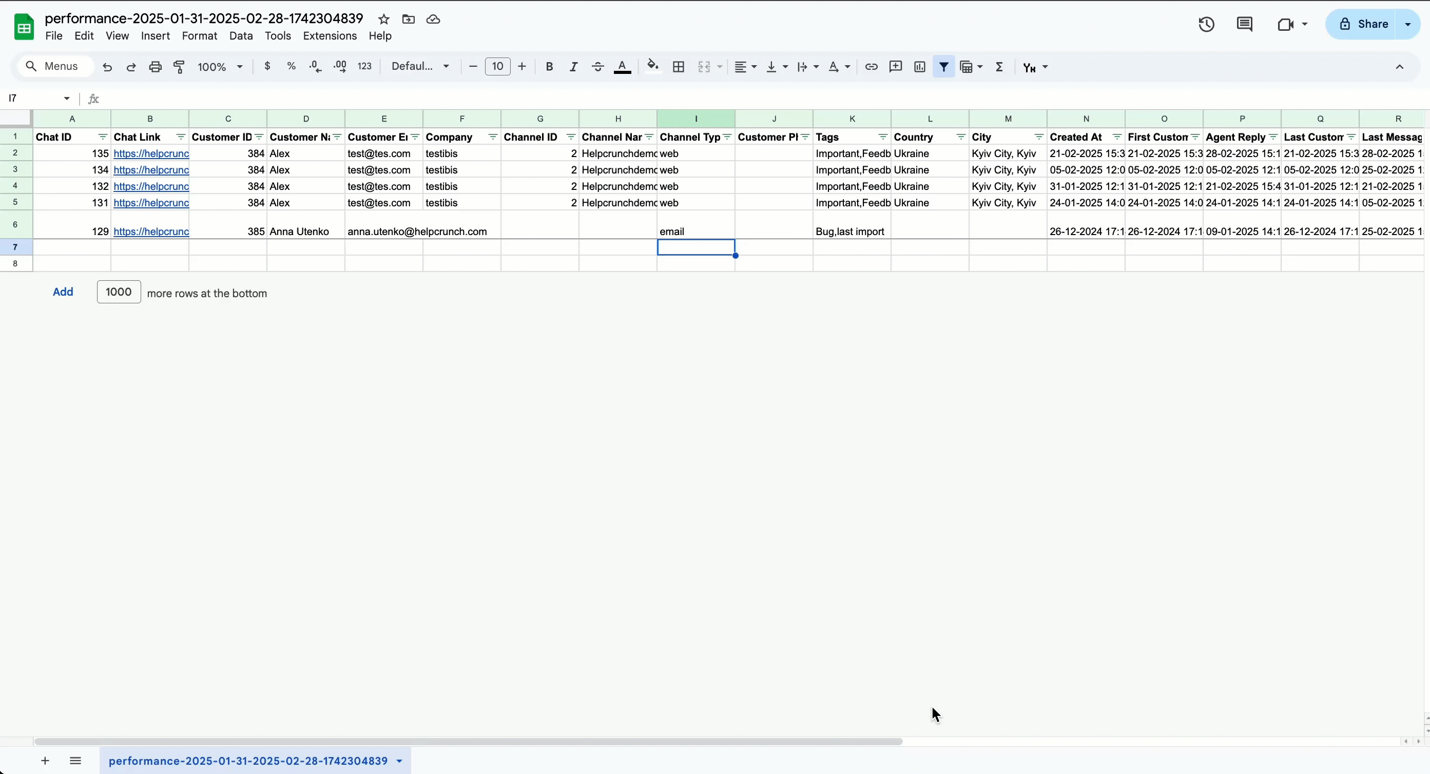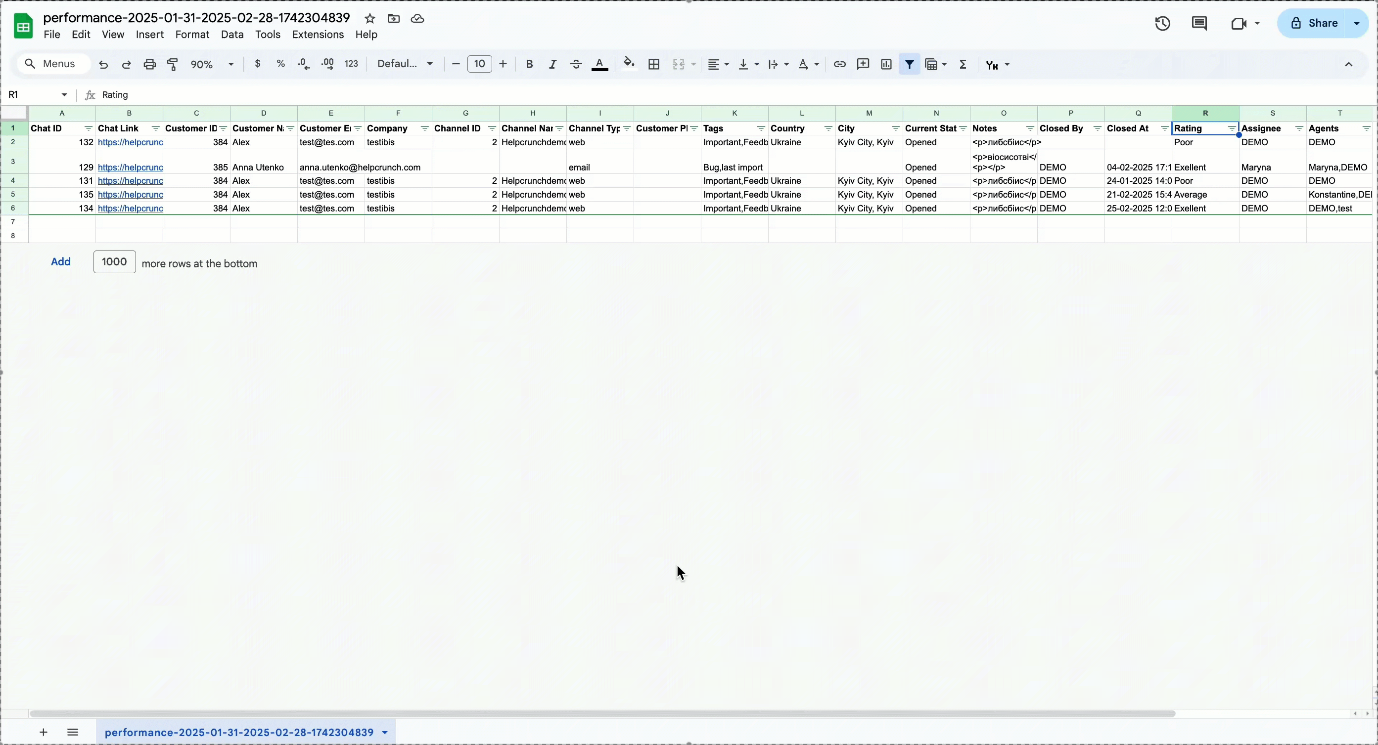 - Export the raw data from HelpCrunch reports.
