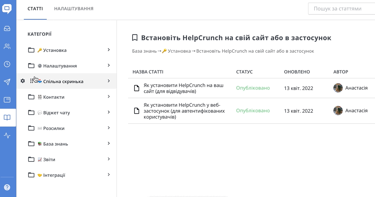 Категорії – це основний спосіб організації вашої бази знань. Вони відображаються на головній сторінці бази знань і допомагають клієнту швидко знайти те, що йому потрібно.