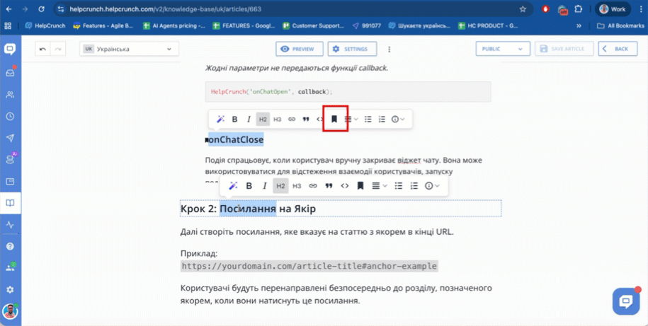 Далі створіть посилання, яке вказує на статтю з якорем в кінці URL.