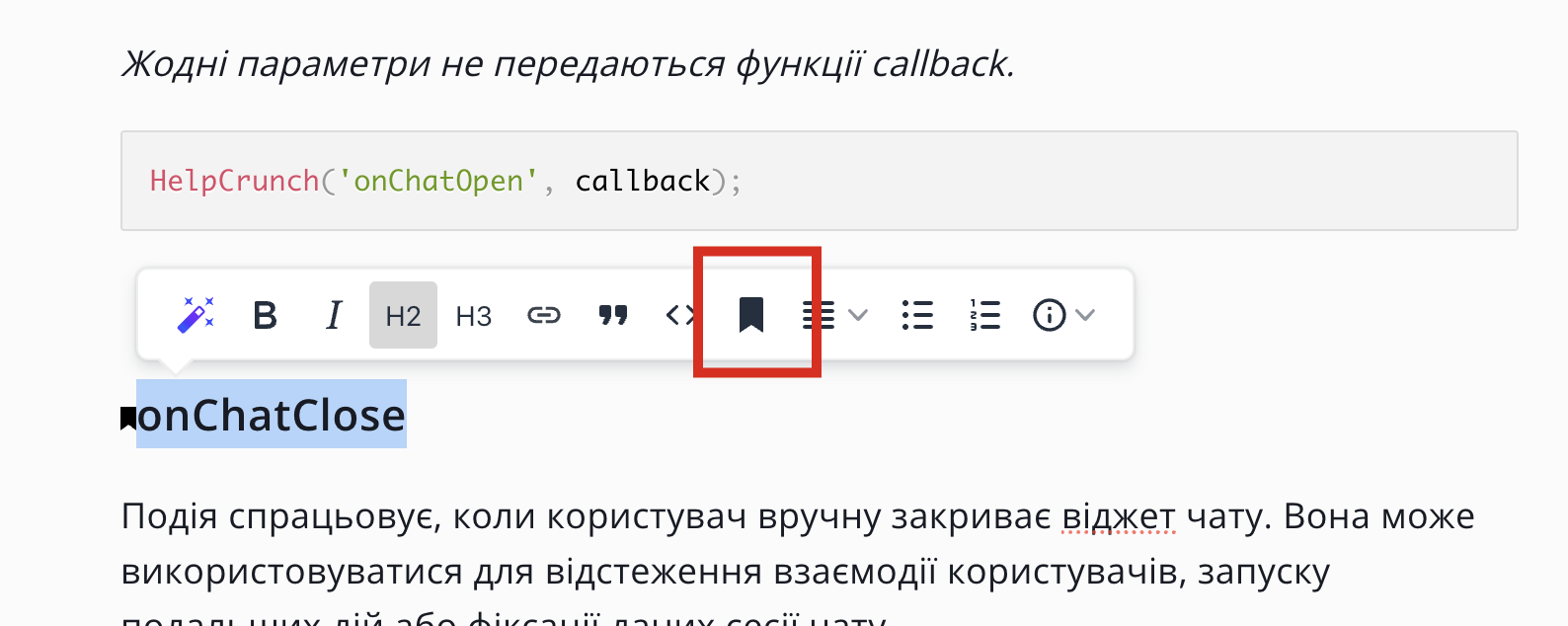 Щоб створити якірні, додайте ідентифікатор до тексту, куди має перейти посилання. Анкором може бути будь-який текст. Для цього клацніть правою кнопкою на початку потрібного абзацу та оберіть знак анкору: