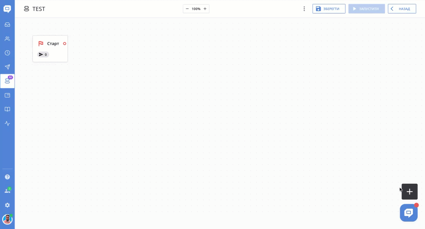 Під час створення ланцюжка чат-бота з нуля ви можете використовувати різні типи блоків. Блоки можна поєднувати між собою, і кожен має час очікування, який за замовчуванням становить 30 хвилин. Якщо користувач не відповість або не взаємодіятиме з блоком протягом зазначеного часу, ланцюжок бота буде перервано, а чат автоматично передано команді підтримки.