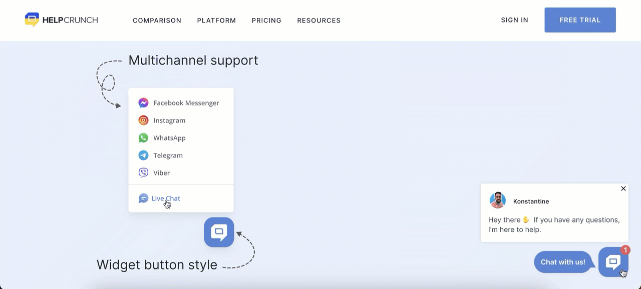 Let's discuss all the ins and outs of chat windows using the most customizable HelpCrunch live chat tool as an example.