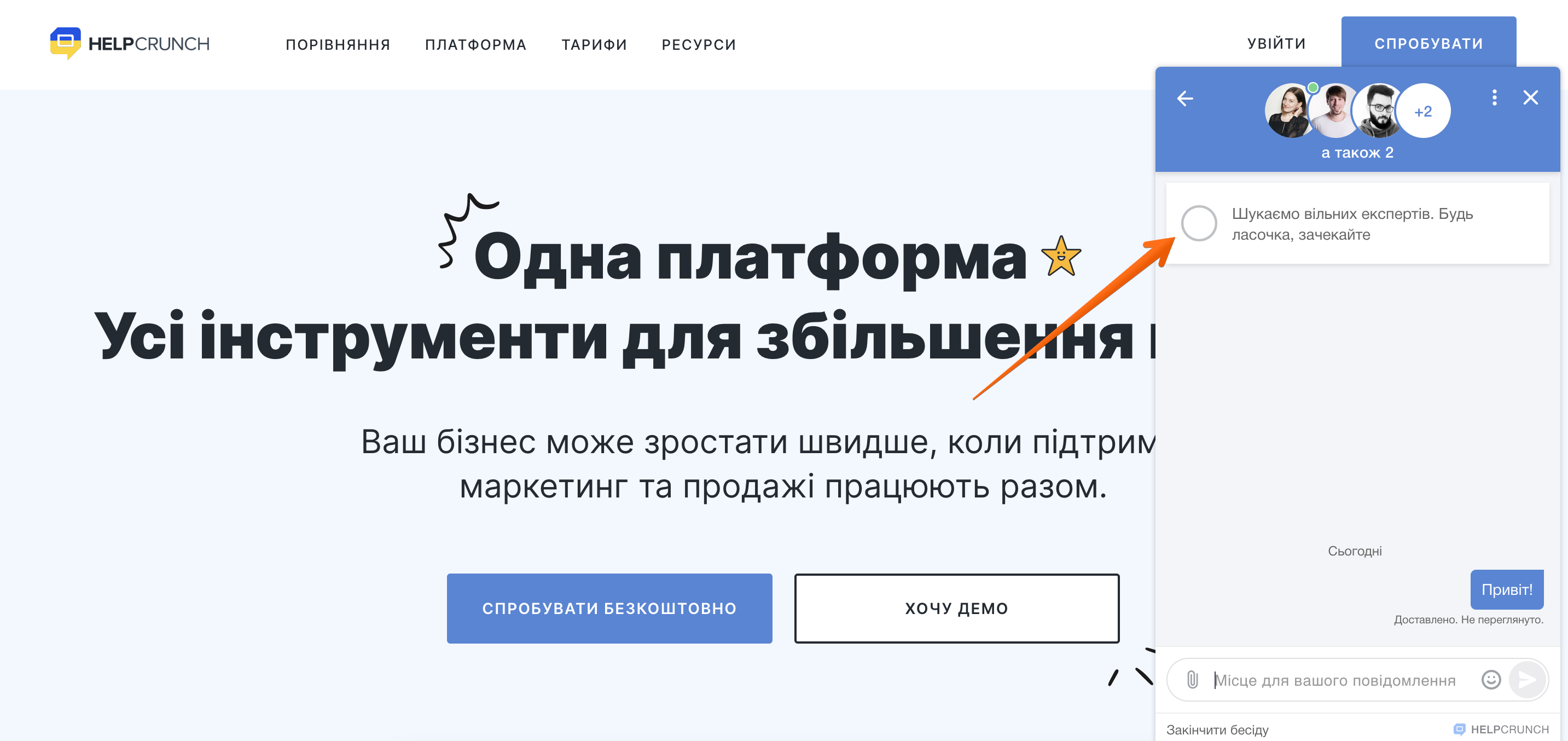 Повідомлення очікування з’являтиметься у віджеті лише тоді, коли ваша команда онлайн. Коли команда в режимі офлайн, відвідувачі натомість бачитимуть офлайн-повідомлення.