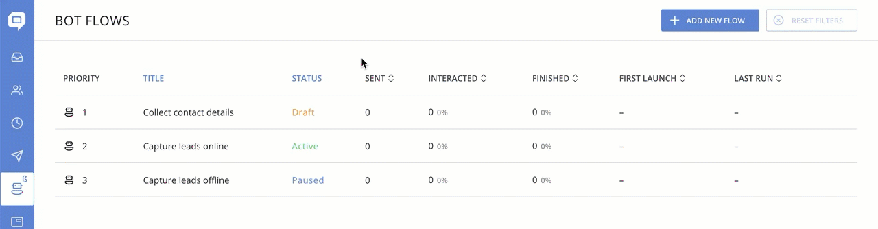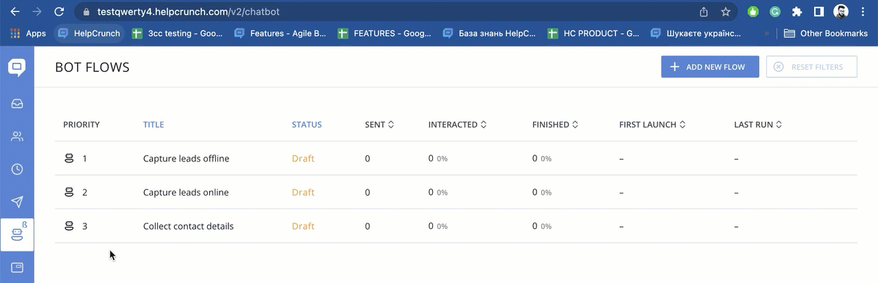 Непотрібні ланцюжки бота можна видалити. Під час наведення курсора з’являється значок кошика. Будьте обережні, цю дію не можна відмінити.