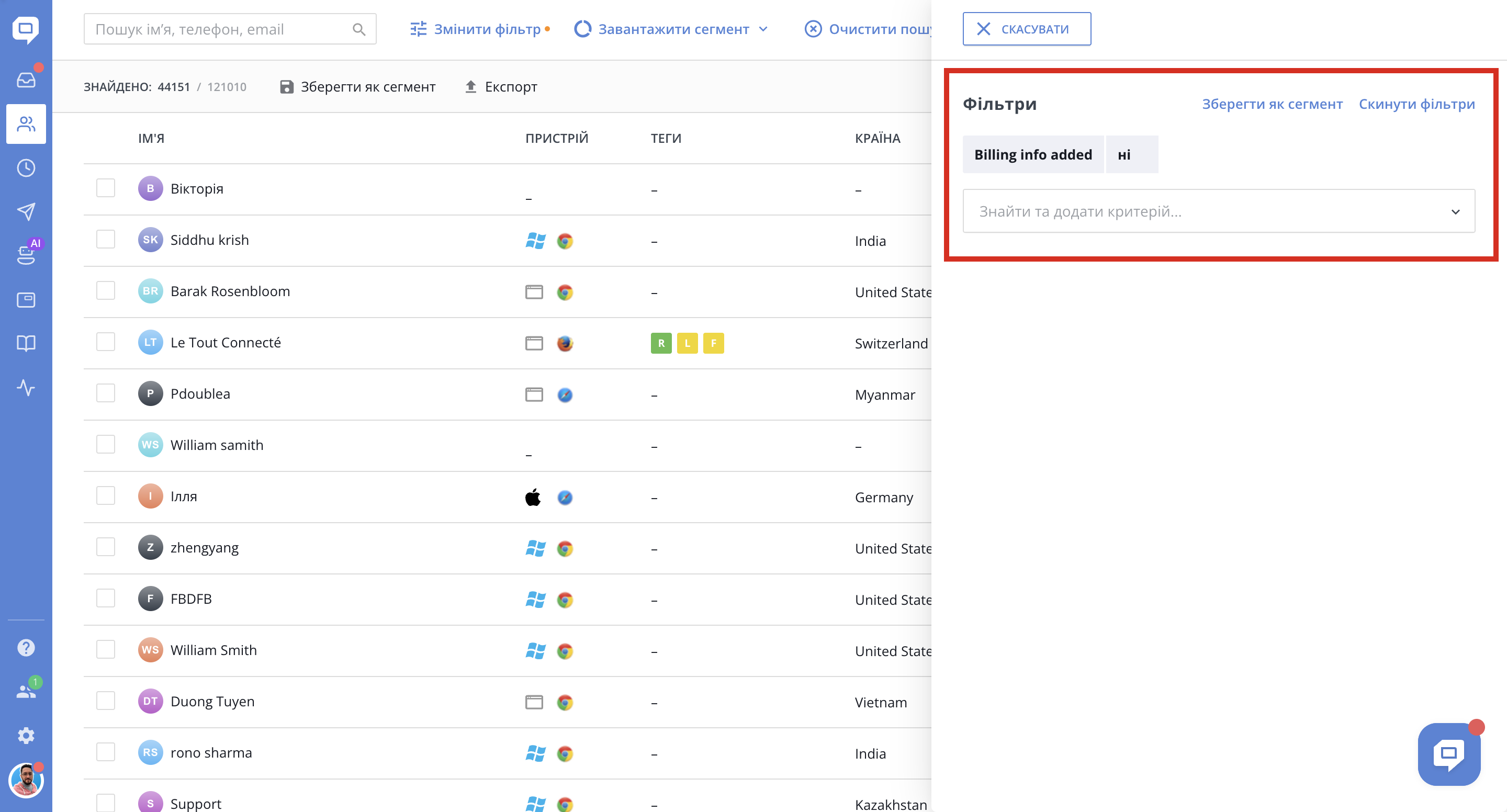 На додаток до імені користувача/електронної адреси/компанії/телефону та ID HelpCrunch дозволяє надсилати додаткові власні атрибути клієнта.